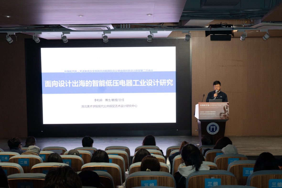 中心主任李和森教授应邀参会,在分论坛作了题为《面向设计出海的智能低压电器工业设计研究》的专题分享。报告中阐述了中国制造业借助工业设计推动国际化转型的可行性及路径。他指出,设计出海不仅关注产品外观的跨文化适应,更需重视以用户为中心的标准化、规范化与本地化设计。在智能低压电器领域,工业设计有助于减少国际市场壁垒、增强品牌认同。结合智能塑壳断路器案例,李和森教授分析了人机交互现存问题,并提出状态联动显示、面板与手柄造型优化、界面层级重组等改进方案,展现了工业设计在助力智能电器出海方面的实际作用。